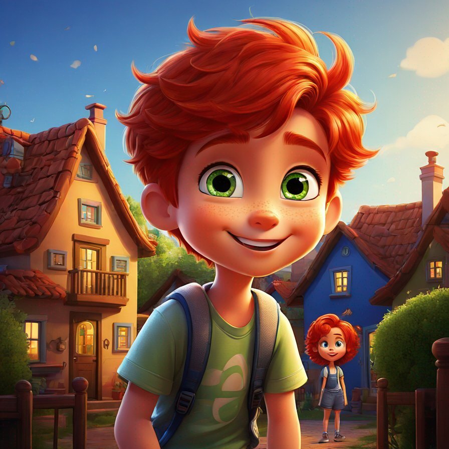 Once upon a time, in a cozy little house on Elm Street, lived a curious young boy named Wally. With his mop of unruly red hair, bright green eyes, and mischievous grin, Wally was always seeking adventure. His best friend, Willow, lived next door. Willow had long braided brown hair, sparkling blue eyes, and a kind heart. The two friends loved exploring together, and they often found themselves in the most extraordinary situations.